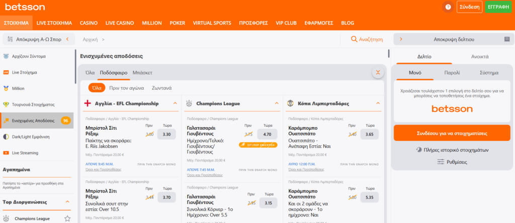 Η δράση στην Betsson συνοδεύεται από καθημερινές ενισχυμένες αποδόσεις στα κορυφαία γεγονότα.