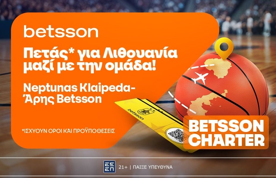 Το Betsson Charter αναχωρεί για την Κλαϊπέντα και τον αγώνα Νεπτούνας – Άρης Betsson, προσφέροντας ένα ολοκληρωμένο πακέτο ταξιδιού αξίας 1.000€.